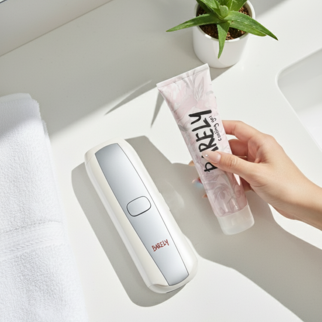 Use during IPL as a conducting gel, then after treatment for cooling relief.
